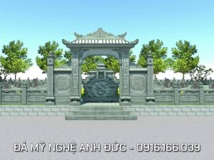 Thiết kế phối cảnh Cổng đá 1 mái cho khu Lăng Mộ gia đình do ĐÁ MỸ NGHỆ ANH ĐỨC, làng nghề đá truyền thống Ninh Vân, Hoa Lư, Ninh Bình tư vấn, xây dựng, lắp đặt.